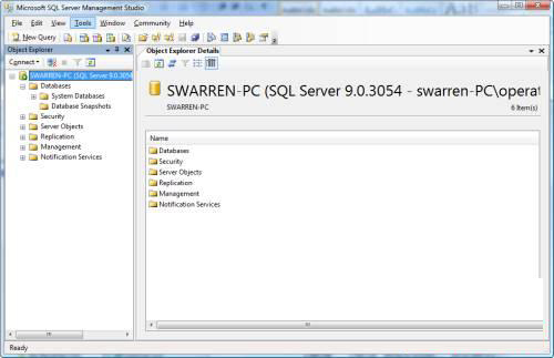 选择SQL Server管理工具出现主界面,它是用来恢复备份数据库的主要工作区。