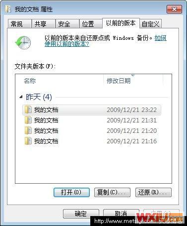 2、仅还原以前版本的文件——该项对于非系统盘推荐使用,如果程序不是安装在系统盘时,也可以选择上一个选项。