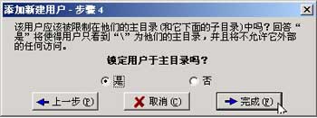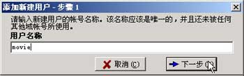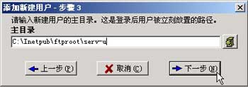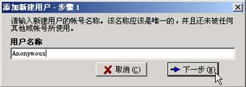 输入匿名用户的缺省名称 Anonymous ,注意:Serv-U 把会自动把用户名为 Anonymous 的用户识别成匿名用户。