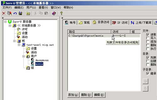 列表(List):赋予用户 浏览文件列表的权限,如果开放了读取全县但关闭列表权限,并不会影响用户的下载,只要用户知道详细的下载路 径就行了。