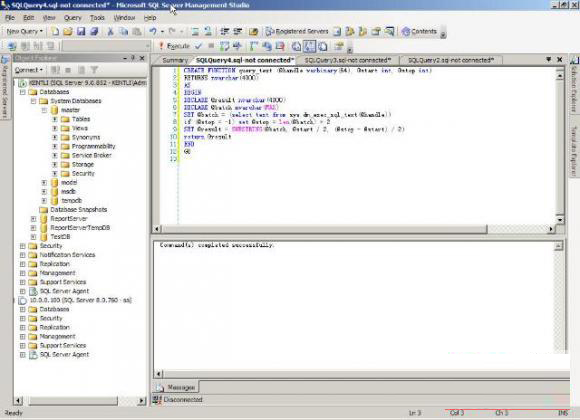 2. SQL Server Management Studio,仿VS的风格,结合了SQL Server 2000的企业管理器和查询分析器的功能